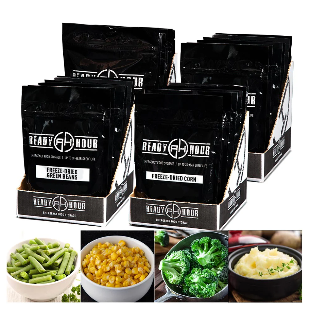 Veggie Packs: Freeze Dried Green Beans, Corn, Broccoli & Mashed Potatoes (184 Servings)