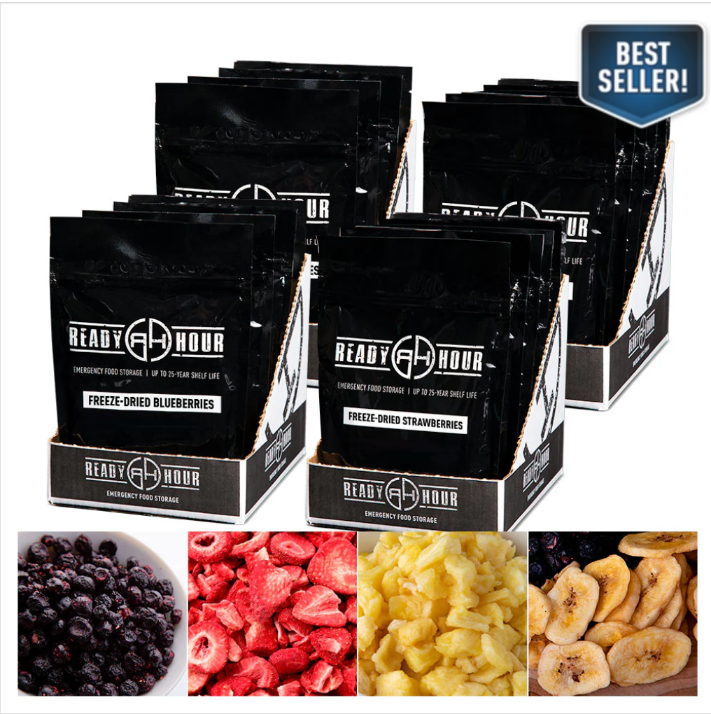 Fruit Packs: Dehydrated Strawberries, Blueberries, Pineapple & Banana Chips (144 Servings)